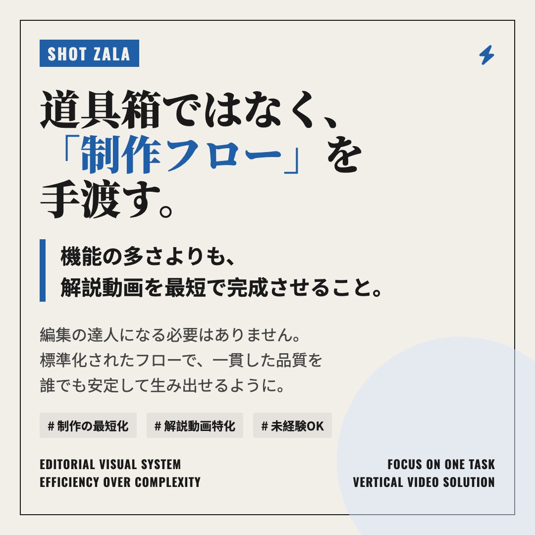 Shot Zala の良さは焦点がぶれていないことです。 機能を増やしすぎず、台本からそのまま公開できる動画までの流れを短くしてくれます。 https://apps.apple.com/us/app/shot-zala/id6756837575